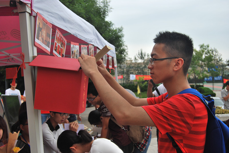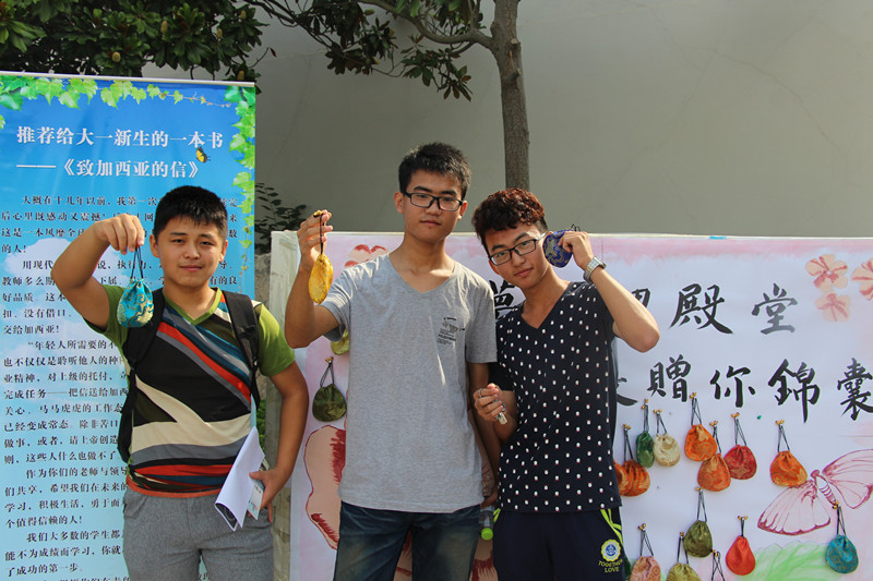 由学长学姐写出对新生的期待与鼓励,并留下联系方式,投入锦囊。小小锦囊传递出无限的祝福与期待,真挚的话语透露出无私的关怀与希冀。马连湘校长在看望数理学子时,亲自提笔写下勉励的话语放入锦囊赠与新生。