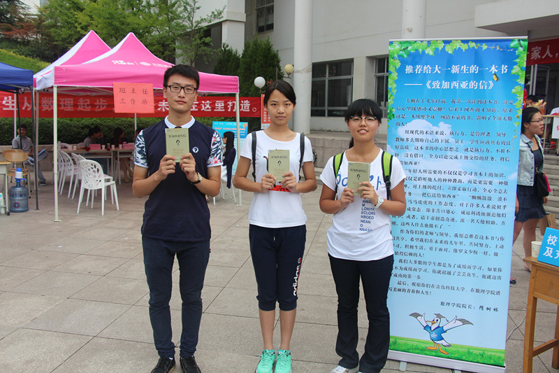 学院为每位新生赠送一本院长推荐书籍:《致加西亚的信》,这是他们大学生涯中的第一堂课。该书是历史上最伟大的出版物之一,是励志书籍的经典之作,许多企业都将此书赠送给部属,作为培养职员主动、敬业、忠诚的必读书。学院将此书赠送给新生,希望他们在未来的几年里,主动学习,积极生活,勇于面对,像罗文少校那样,做一个值得信赖的人!