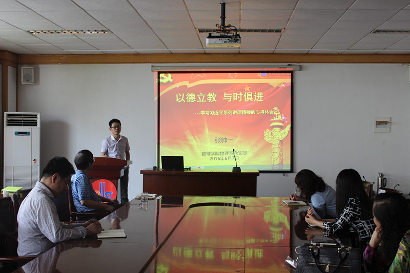 学院各党支部举行微党课比赛,数学系党支部牟丽君老师从歌曲《为了谁》入手讲解了中国共产党的宗旨是全心全意为人民服务,以及历代党的最高领导如何阐述和落实这一党的最高宗旨;物理系张帅一老师从学习习近平系列讲话引出如何在新形势下加强师德建设,做四有好老师。学生党支部王新同学讲了如何做一个合格的学生党员。另外学院以互联网为载体,利用学院微信平台、QQ群等定期为党员推送党建理论、党员管理和服务群众等内容,为学习教育持续深入开展找到了新途径。