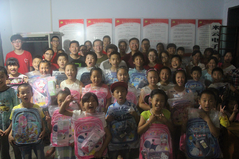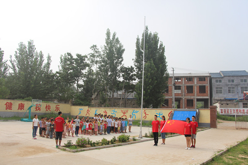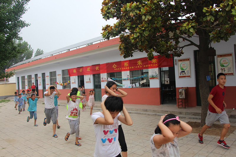 在陡山小学,志愿者们针对农村留守儿童举办了暑期夏令营活动,开展手工制作、逃生演练、辅导课业、教授音乐、舞蹈等活动,寓教于乐,向当地孩子普及环保、健康、安全、向上的生活理念和技巧,积极弘扬正能量;并联系青岛科技大学成功校友张涛总经理,捐赠了价值10000余元的问题用品,为当地留守儿童送上爱心慰问。