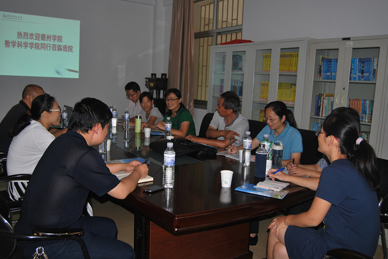 2016年9月14日上午,德州学院数学科学学院副院长张玉坤一行到偷拍厕所 进行考察交流,双方就学科建设和学科竞赛组织工作进行了座谈。副院长杨树国出席座谈会并讲话,数学建模教研室和应用数学教研室负责人参加座谈会。