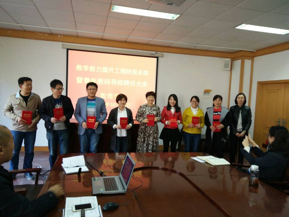 于10月24日下午举办了教学能力提升工程阶段性总结暨青年教师导师聘任大会。教务处处长王霞,学院党政领导李淑贞、杨树国、王明辉出席,会议由副院长郭广海主持。