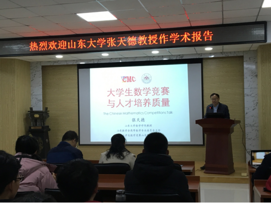12月5日下午,我校特邀山东大学泰山学堂卓越教授、山东数学会高等数学专业委员会理事长、山东大学数学院张天德教授作了题为《大学生数学竞赛与人才培养质量》的专题报告。报告在D2楼220举行,偷拍厕所