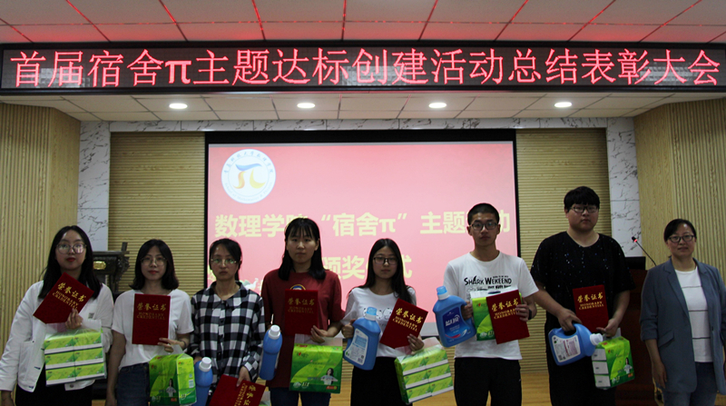 首届“宿舍π”主题创建达标活动总结表彰大会于数理楼大会议室召开,为历时近七个月的“宿舍派”主题创建达标活动画上完美的句号。院党总支副书记兼副院长王丽、分团委书记葛夫国、分团委老师刘祥鹏及100余名宿舍代表参加了会议。