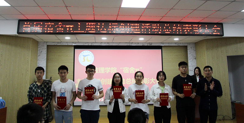 会上,王丽简述了首届“宿舍π”主题创建达标活动的发起背景及开展情况,并宣布表彰决定,与会老师为荣获优秀宿舍称号的20个宿舍代表颁奖。考研宿舍南区三号楼B605、实践宿舍南区十号楼419、竞赛宿舍南区三号楼B610、学霸宿舍南区三号楼A501、卫生模范宿舍南区十号楼309作为优秀宿舍代表上台展示并交流经验。葛夫国最后宣读进一步实施“宿舍π”主题创建达标活动的实施意见,会议最终在阵阵掌声中落下帷幕。会后,学院为表彰先进,树立典型,为达标宿舍及优秀宿舍分别颁发洗衣液、抽纸、香皂等生活用品,对同学们的努力给予肯定的同时,鼓励大家再接再厉,共同营造良好的宿舍环境。