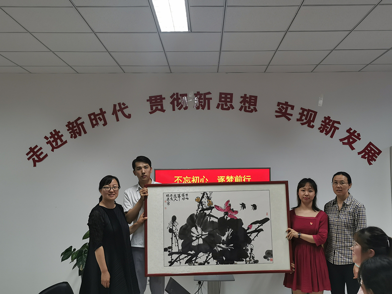 党总支为每位毕业生党员赠送一本《不忘初心》,扉页上记录了每位党员的入党时间和领导、辅导员寄语,希望每位党员同志都能铭记党员身份,牢记入党初心。毕业生党员为困难生库同学赠送专业书籍,鼓励同学们在大学期间努力学习,取得更优异的成绩,并为学院赠送字画,祝愿学院桃李满天下。