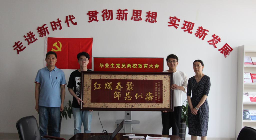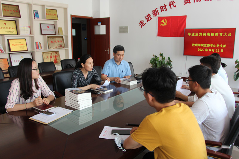 党委书记李淑贞为同学们作最后一次党课《增强制度意识,做制度执行表率》,叮嘱毕业生党员要始终以高标准、严要求规范自己,要把疫情作为对自己的考验,努力奋斗,收获成长。随后李淑贞代表学院接受毕业生留念献礼,并为毕业生党员赠书《这就是中国——走向世界的中国力量》,邀请同学们在母校70周年校庆之际回校共襄盛典。