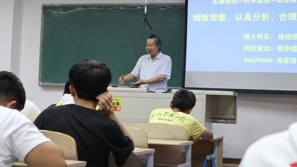 王鼎益以“物理学和物理学人:历史、现状、和未来”为题,简要回顾物理学的发展历程,重点介绍以伽利略-牛顿-麦克斯韦为代表的经典物理学、普朗克-爱因斯坦-薛定谔为代表的近代物理学、以及以杨振宁-米尔斯为代表的现代物理学的基本概念和主要成果,概述物理学在科学技术和社会经济发展中的应用,揭示建立和发展科学理论的规律,即“实践经验—思维加工—理论体系—实践检验”,提出物理学人应该加强修养,培育“实验探究—科学思维—物理观念—实事求是”的科学素质,以期与大家,特别是与物理新生共勉,专心学习,潜心研究,创造有利于基础研究的良好生态。