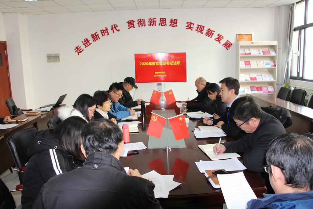 党委在学院党建活动室召开2020年度党支部书记述职会,学校党委组织部正处级组织员孟照国,学院党政领导、教工和学生党支部书记参加会议。