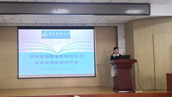 在报告会上,董华教授围绕青年教师站好讲台的重要性、青年教师教学技能提升的困难和路径、青年教师怎样平衡教学与科研的关系、一流课程和教学项目申报四个角度作了专题报告。她指出,教师作为影响和成就他人的职业,坚持“课大如天,学生第一”;教学技能提升坚持“学习-反思-突破”;教学与科研坚持“不抛弃、不放弃、善平衡”;并结合自身申报教学和项目申报的经历深入浅出的讲解了一流课程申报的方法技巧,她提出要将“教学做细”,汇聚小流才能成就江河,注重教学点滴的积累才能实现质的突破。