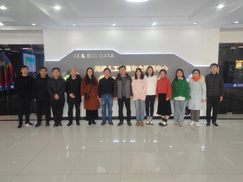 中科院海洋环流与波动重点实验室党支部徐振华书记介绍了两个单位共同培养的6名博士、硕士研究生的学习和科研情况。大家共同来到研究生室看望了学生。导师们亲自询问了各自学生的情况、目前遇到的困难和需要导师解决的问题等等。之后,徐振华书记带领大家参观了海洋人工智能与大数据中心。该中心构建了海岸带-近海-大洋“空天海地”一体化海洋观测网络,实现了基于北斗系统的海洋全水层观测数据的实时传输,服务于气候预报、防灾减灾、国防安全、海洋经济等海洋环境安全保障。大家不禁感受到“万物以数据而互联、未来因数据而智能”带给人类观测世界、改变世界的能力。