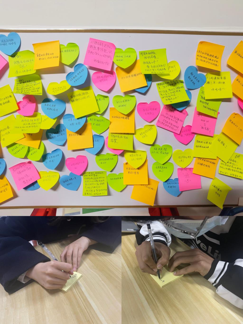线下通过心理展示墙的形式,用一种仪式感、归属感,引导学生探索内心真实世界,写下自己对疫情下生活的感受及对未来生活的祈愿,用语言传递温度、用真情坚定信念。