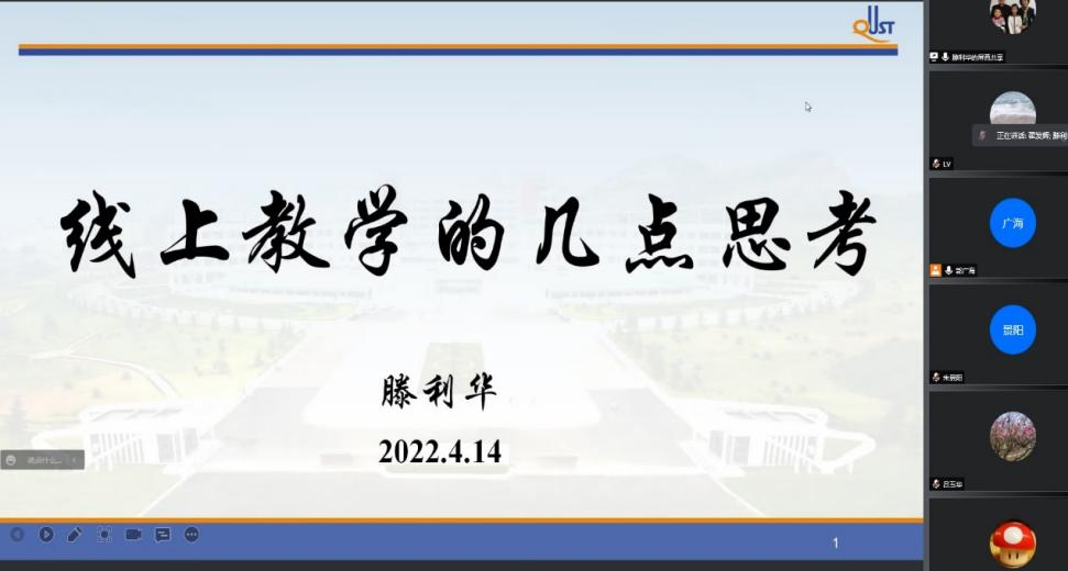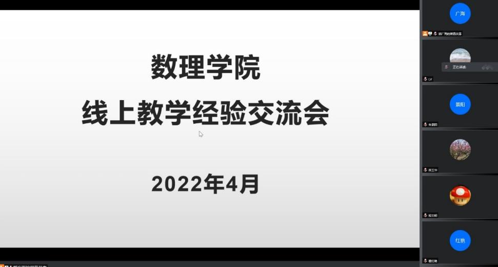 郭广海首先对学院近一个月的线上教学、线上听课及相关情况进行了介绍和反馈。他肯定了老师们克服困难、战胜疫情的担当,对老师们保障教学秩序和教学效果提出表扬,他表示在老师们的共同努力下全院公共课和专业课均保持良好的教学秩序。学院不同专业六位教师从多角度进行了线上教学经验分享交流。