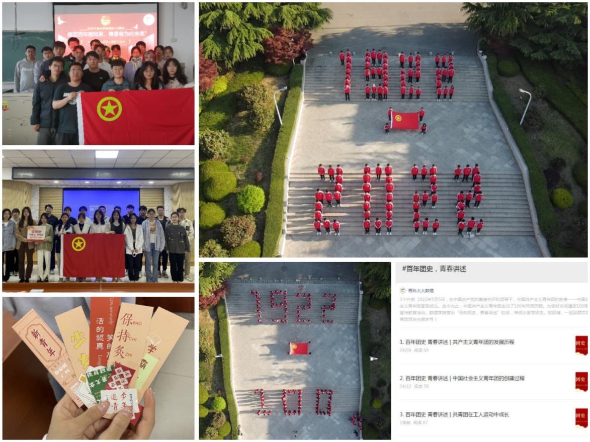 团委各团支部通过“强化仪式感召、强化文化熏陶、强化氛围营造”,集中开展快闪、“我与团旗合个影”、重温入团仪式、面向团旗宣誓、发表入团感言等活动,组织全体共青团员实地接受一次“沉浸式”的精神洗礼。开辟“百年团史,青春讲述—建团百年”微信公众号宣传专栏,组织党史团史知识竞赛,掀起线上线下团史学习热潮。