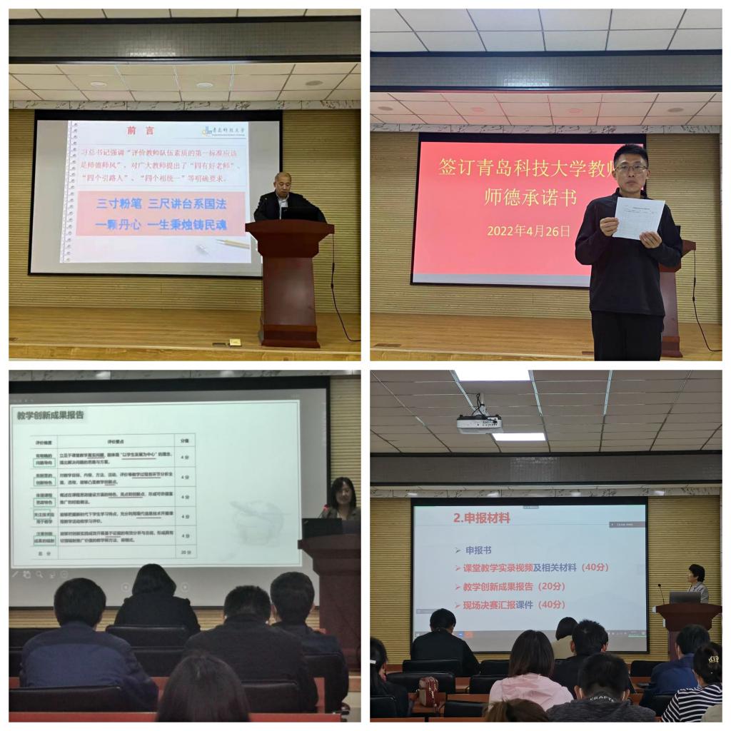 经验交流增信心。近日来,学院开展了教学创新系列培训活动,由山东省教师教学创新大赛省赛一等奖获得者王红霞副教授、二等奖获得者李秀丽教授分场次做了经验分享。学院党政领导和全体教职工通过线上和线下相结合的方式参与会议。两位主讲人跟各位老师分享了自己在教学创新过程中融入课程思政的思考。对思政目标和知识能力目标相融合,隐性思政和显性思政相结合,充分利用现代信息技术,考评体系多元化等问题方面进行了重点解析,并通过典型的案例进行了详细的解释说明。会后,老师们做了进一步的交流和讨论,与会人员一致认为教学创新势在必行,提升课程思政的效果势在必行。
