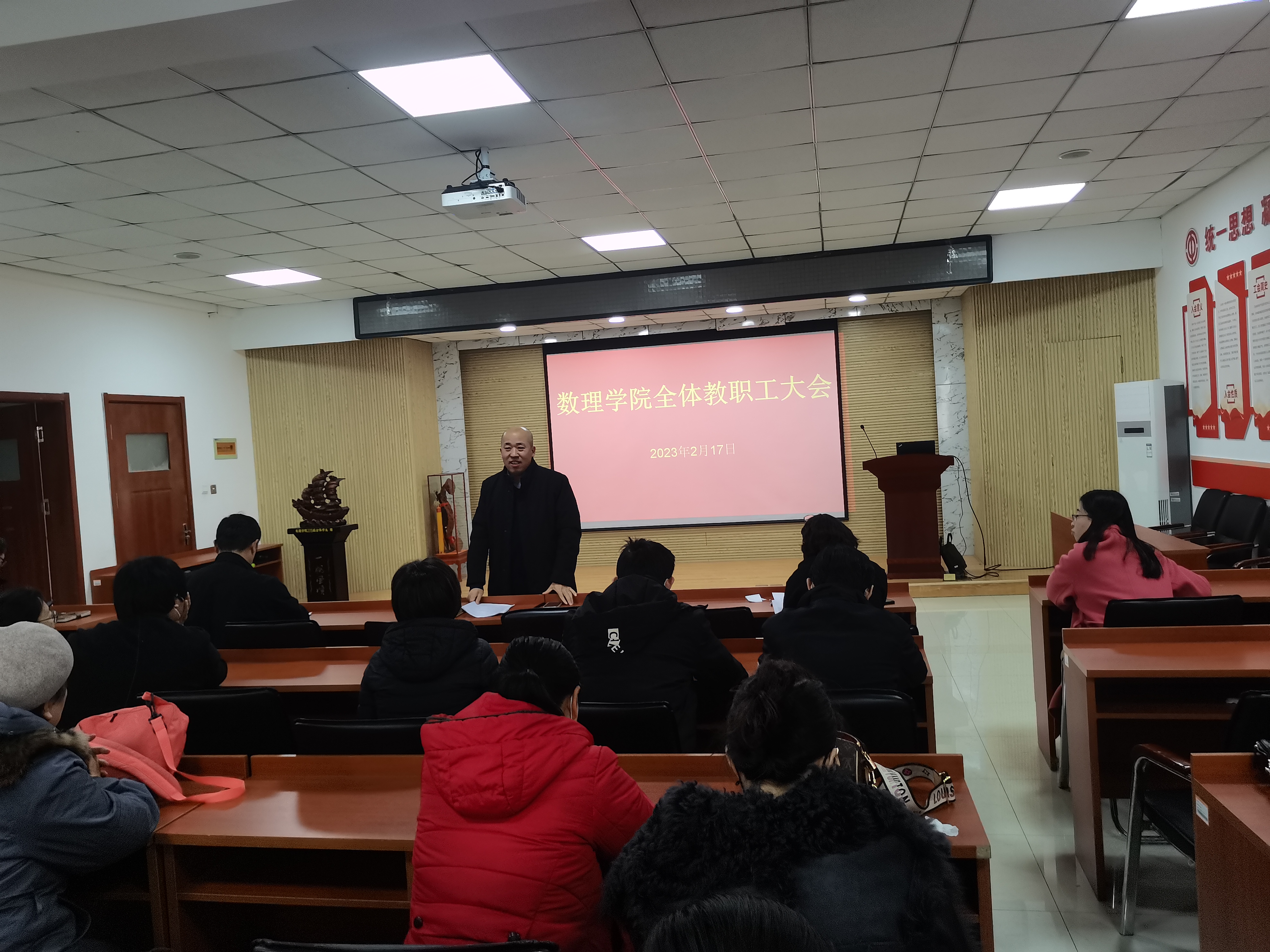 院长杨树国传达学习了陈克正校长在学校中层干部会议上的讲话精神,梳理总结学院上年度工作成效,并从党建引领、人才培养、科研高绩点、课程建设等8个方面安排部署2023年学院重点工作和聘期目标任务。