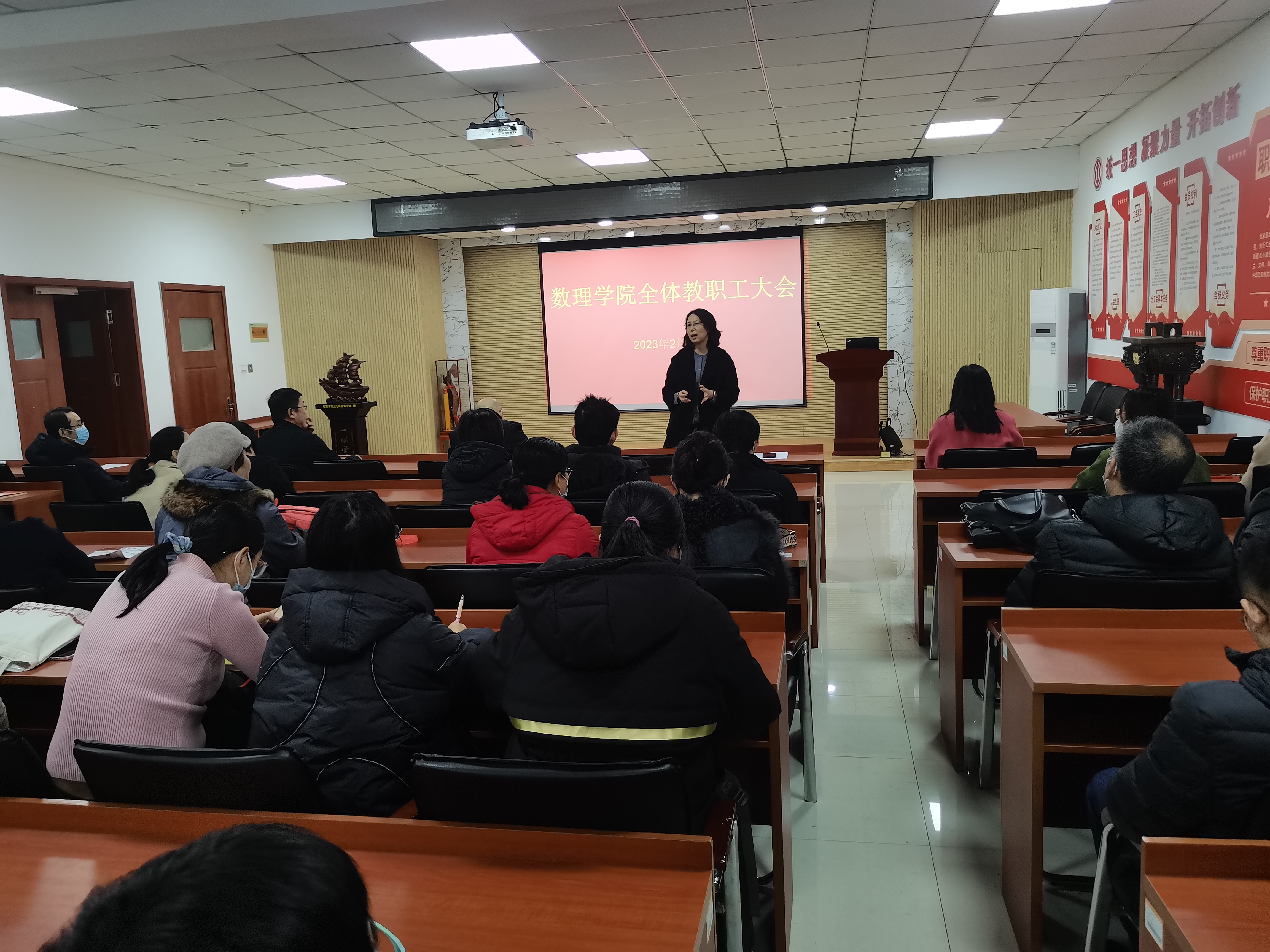 在220会议室召开2023年春季学期第一次全体教职工大会,谋划布局新篇章,全力冲刺新学期。学院党政领导及全体教职工参加会议。