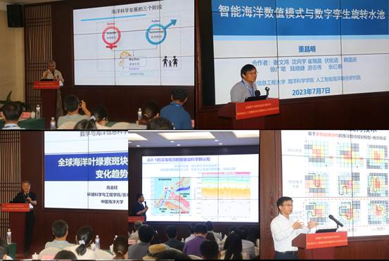 7月7日上午,国家杰青、中国海洋大学教育部“长江学者”特聘教授陈戈教授、中国海洋学会人工智能海洋学专委会主任董昌明教授、中国海洋大学崇本学院院长高会旺教授、中国科学院海洋环流与波动重点实验室主任汪嘉宁教授、青岛阅海信息服务有限公司总经理艾波教授分别做了主旨报告。