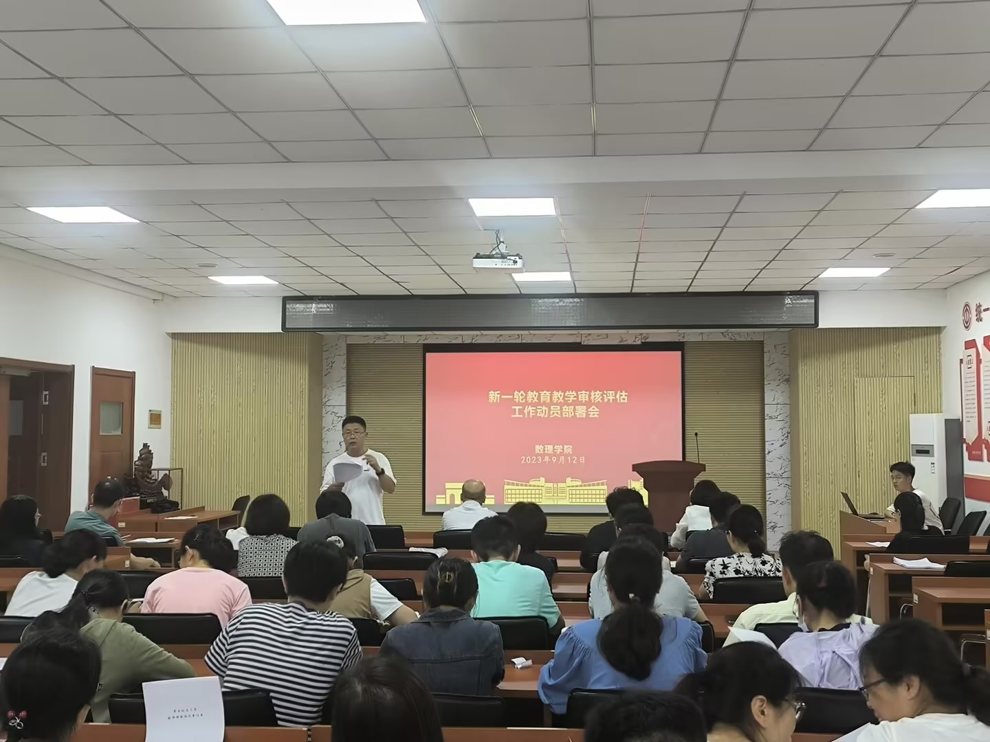 楼220会议室召开了新一轮本科教育教学审核评估工作动员部署会。学院全体教职工参加了会议。会议由副院长郭广海主持。