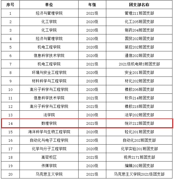 统计212团支荣获学校第二期“团聚力”卓越团支部。