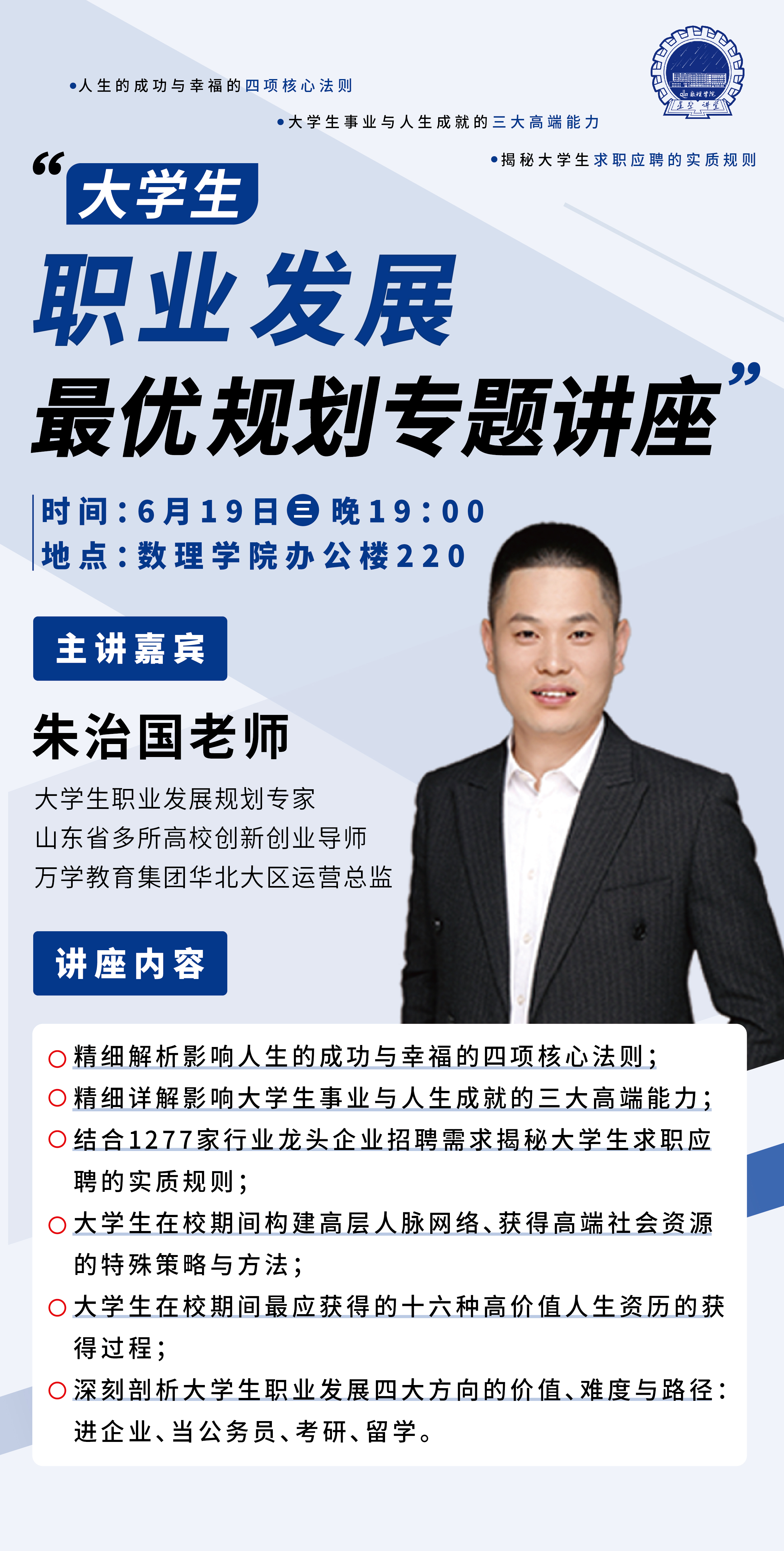 上一篇:星空讲堂—职业发展最优规划专题讲座(第2期)