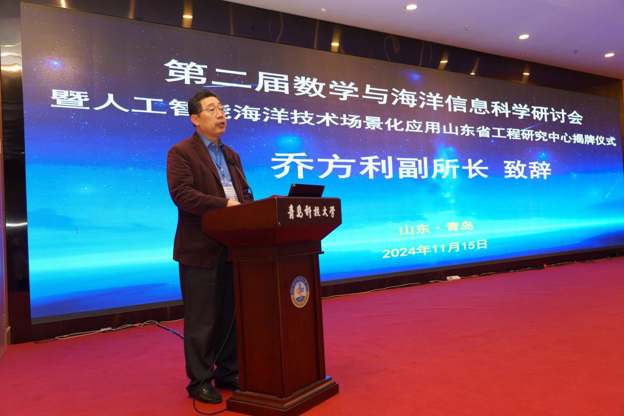 自然资源部第一海洋研究所副所长兼总工程师乔方利研究员在致辞中指出,“数学是一切科学的基础,人工智能技术已经成为当今社会和科技发展的重要驱动力量。利用数学的思维、知识和方法,结合人工智能的手段来解决海洋科学与工程中的系列问题,是提升海洋科技创新水平、培育海洋新质生产力的重要利器,是当今最活跃的研究领域;瞄准海洋科技和人工智能技术发展的前沿,努力挖掘数学、人工智能与海洋信息科学之间内在的有机联系,实现学科交叉融合、促进海洋科技迅猛发展,正当其时,大有可为!本次会议的举行是青岛科技大学前瞻布局、先导规划海洋学科高层次、宽领域、交叉创新的成果,体现了学校在学科建设发展的顶层设计与精心谋划”。