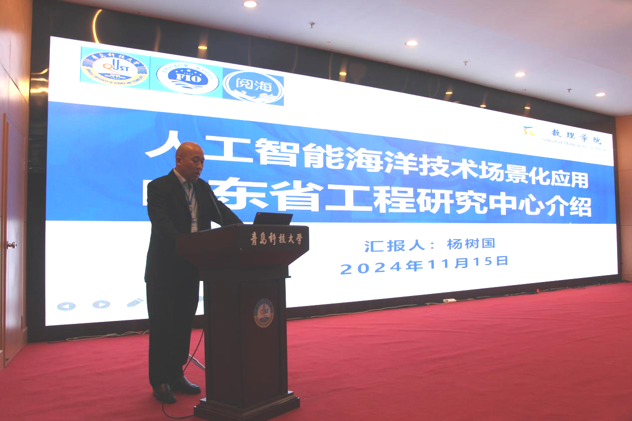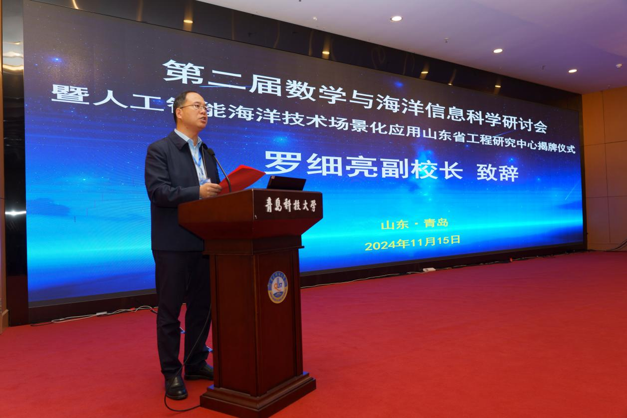开幕式上,青岛科技大学党委常委、副校长罗细亮教授代表学校致欢迎辞。他指出,“学校聚焦山东海洋强省建设和青岛打造现代海洋经济发展高地目标,发挥青岛海洋科研集聚优势,整合校内外资源,积极推动数学与大数据、海洋科学、人工智能海洋学等新兴学科和专业的交叉融合,打造高能级科研平台,有组织服务地方经济社会发展。学校与自然资源部第一海洋研究所、青岛阅海信息公司共同申报的‘人工智能海洋技术场景化应用山东省工程研究中心’成功获批,必将进一步推动创新链产业链深度融合,加速人工智能前沿技术在海洋产业领域的创新应用,为构建现代海洋产业体系增势赋能。”,并充分肯定了本次会议对学校学科建设、平台建设等方面的重要作用。