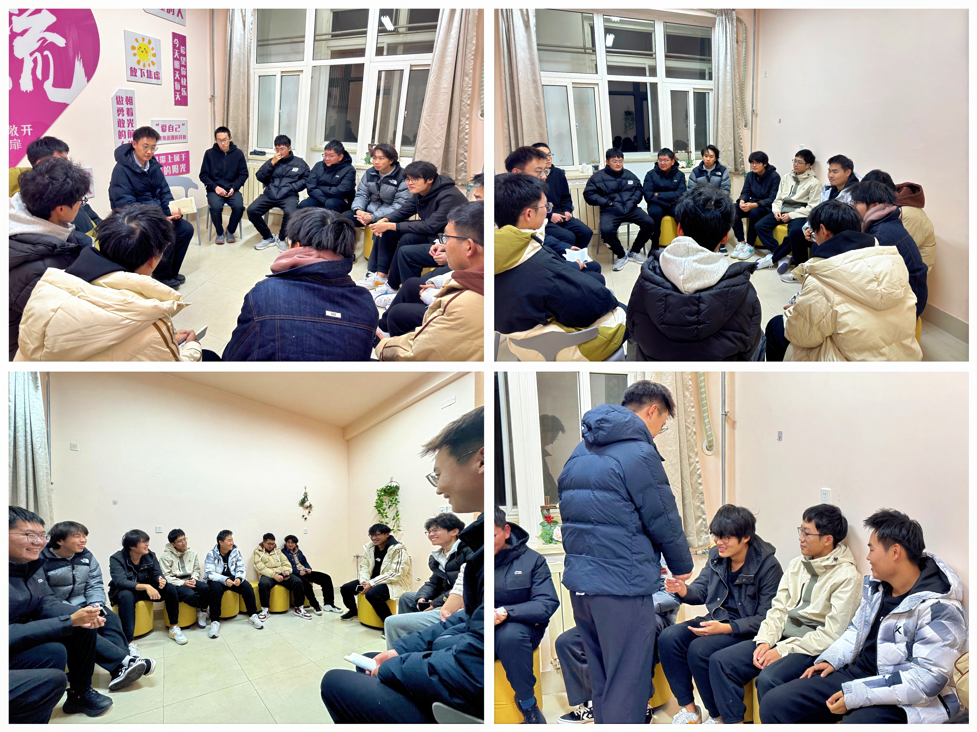 此次心理团辅活动的成功举办,不仅提升了同学们对心理健康重要性的认识,更为宿舍人际关系的和谐构建提供了有效路径。今后,学院将继续深化心理健康教育工作,不断创新教育模式,举办更多贴近学生需求、形式多样的实践活动。塑造学生心理韧性,为学生释压赋能,努力培养身心健康、全面发展的时代新人。