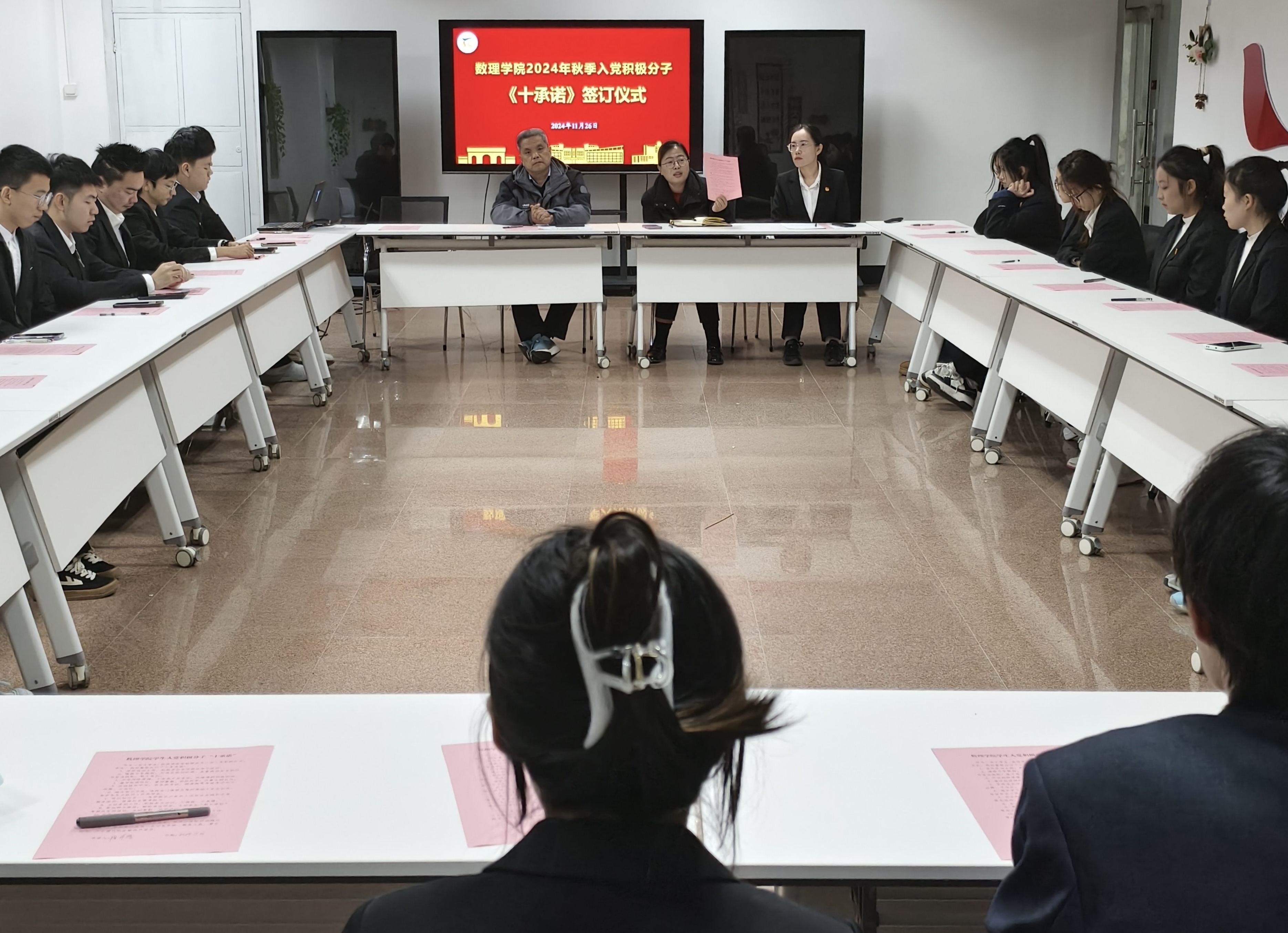 召开《入党积极分子“十承诺”》签署会,学院党委书记刘保成、党委副书记兼副院长李雯雯、团委书记兼学工办主任付凯到会指导。