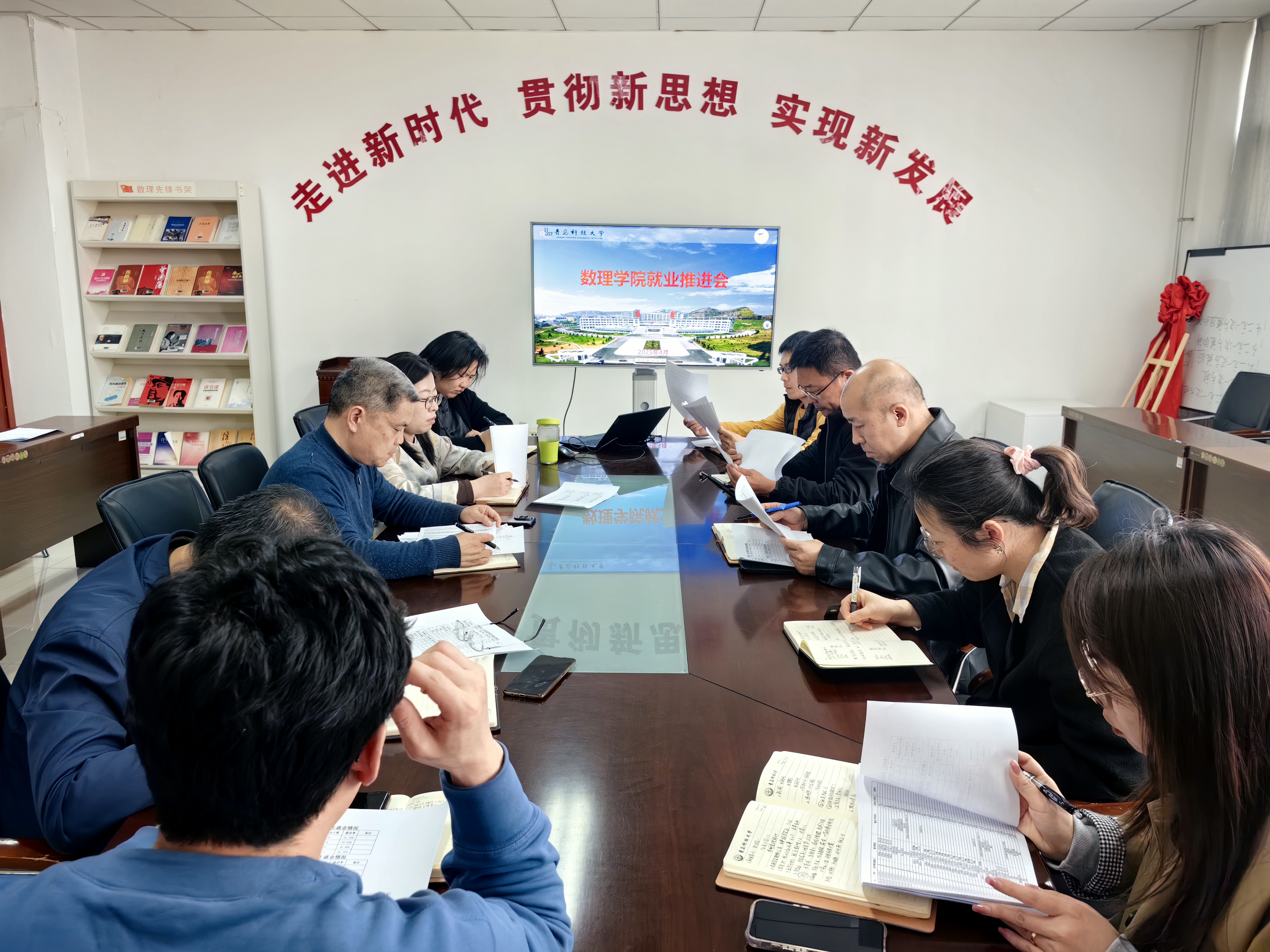 召开2025届毕业生就业工作推进会。学院党委书记刘保成、院长杨树国、党委副书记李雯雯及系主任、毕业生辅导员参加会议。会议全面分析了当前就业形势,重点研讨了毕业生最新就业进展、考研录取及调剂情况,并对下一阶段就业促进工作进行了部署安排。