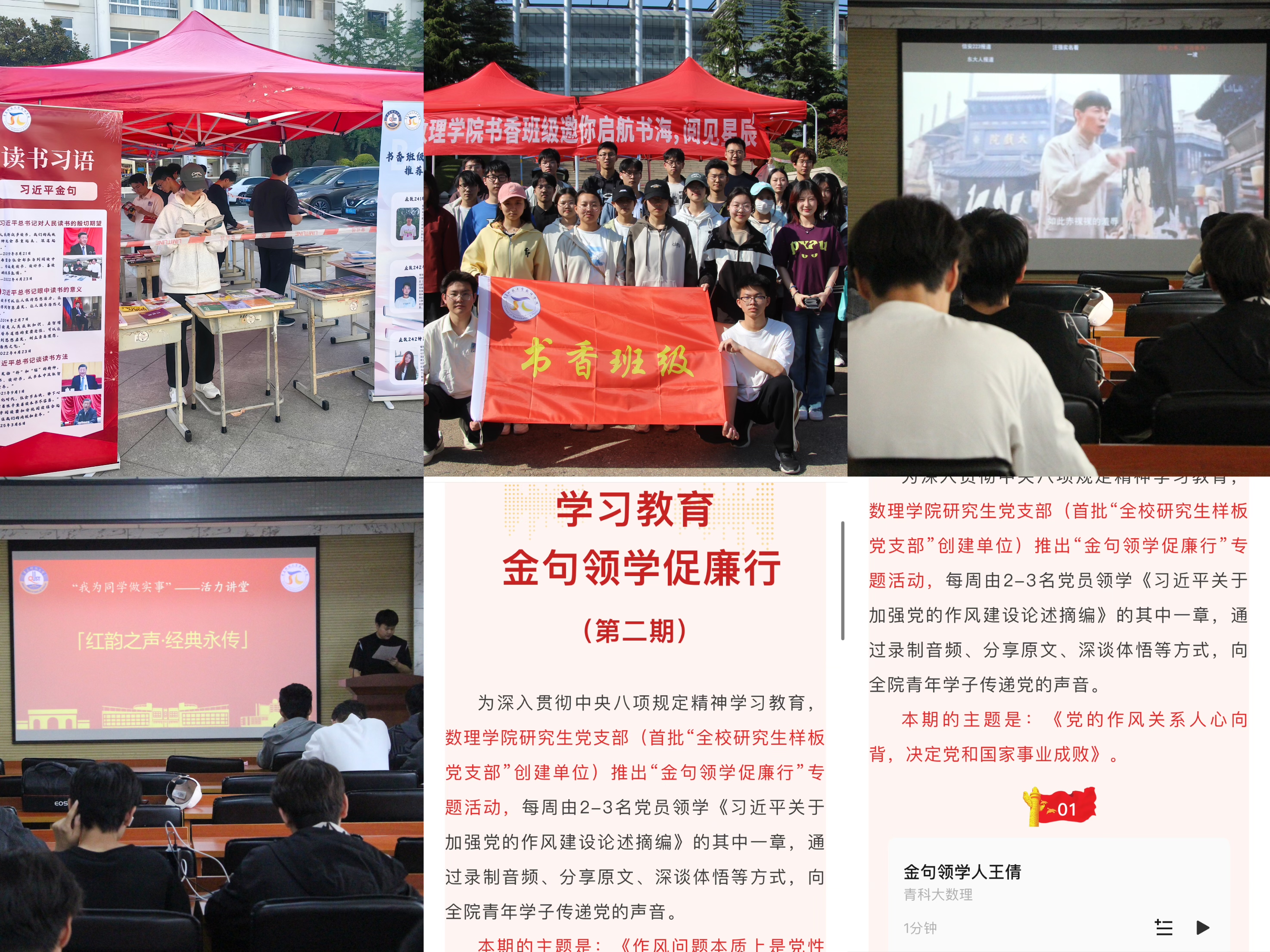 学生党支部开展“金句领航,铸魂青春”,通过录制音频、分享原文、深谈体悟等方式,向青年学子传递党的声音,引导青年学子领悟五四精神的时代价值。各年级团支部联合开展“红韵课堂育英才,五四精神永传承”活动,通过“时空信箱”跨时空对话革命先辈,沉浸式重温红色精神。“书香团支部”举办“启航书海,阅见星辰”读书活动,四大功能区打造爱读书、读好书、善读书的良好氛围。