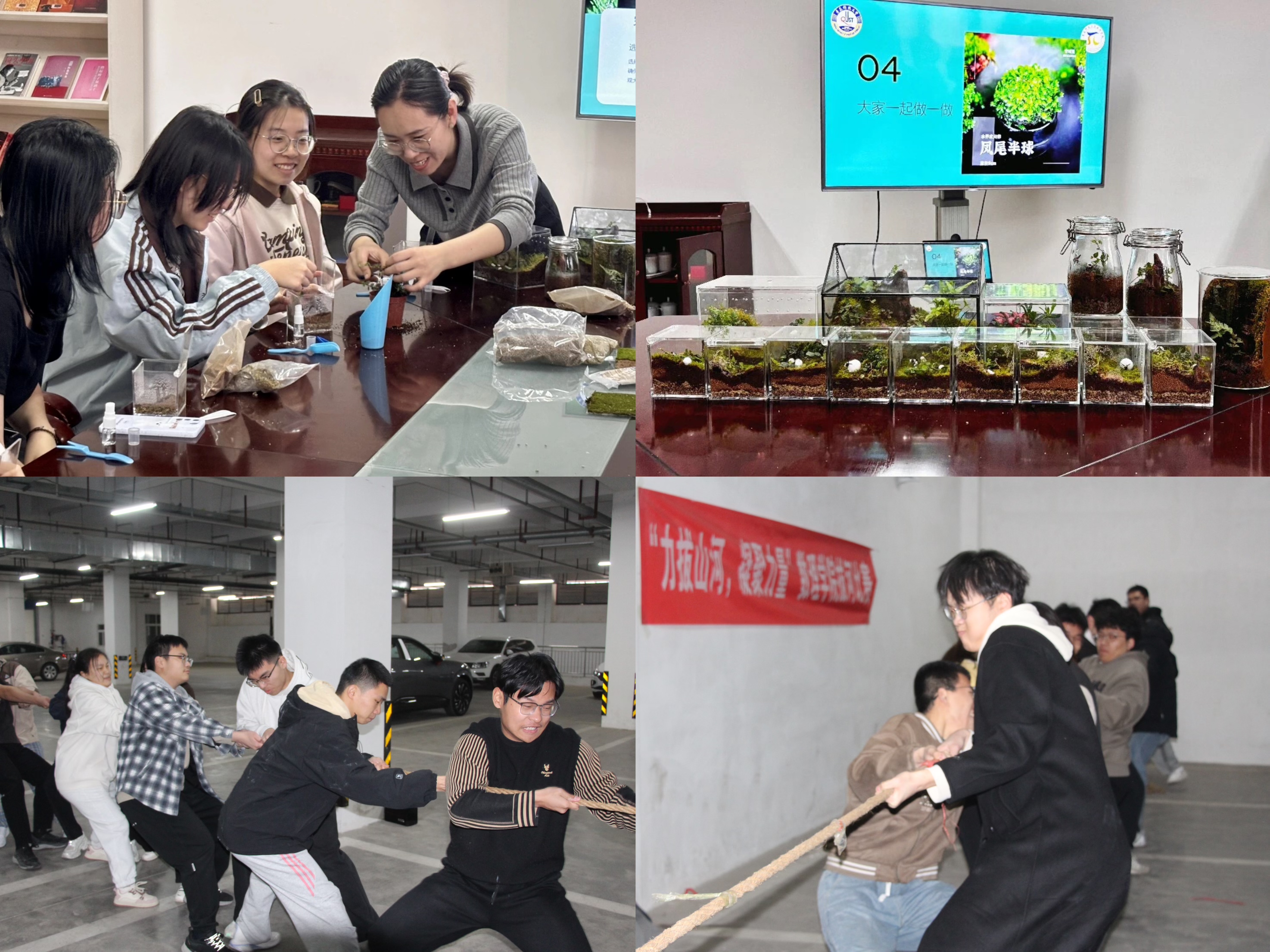 面向研究生,“数理夜校”开展“方寸天地,掌中自然”桌面微景观创,将美学教育与思政教育相融合,让学生在艺术创作中感悟自然,引导学生在实践中深化思想认同。面向本科生,组织春季拔河比赛、毽球联赛、青春速度、青春力量及红心接力跑等活动,让学生在运动中感受速度与激情,实现体育竞技与五四精神传承有机融合,激发运动热情与爱国情怀。