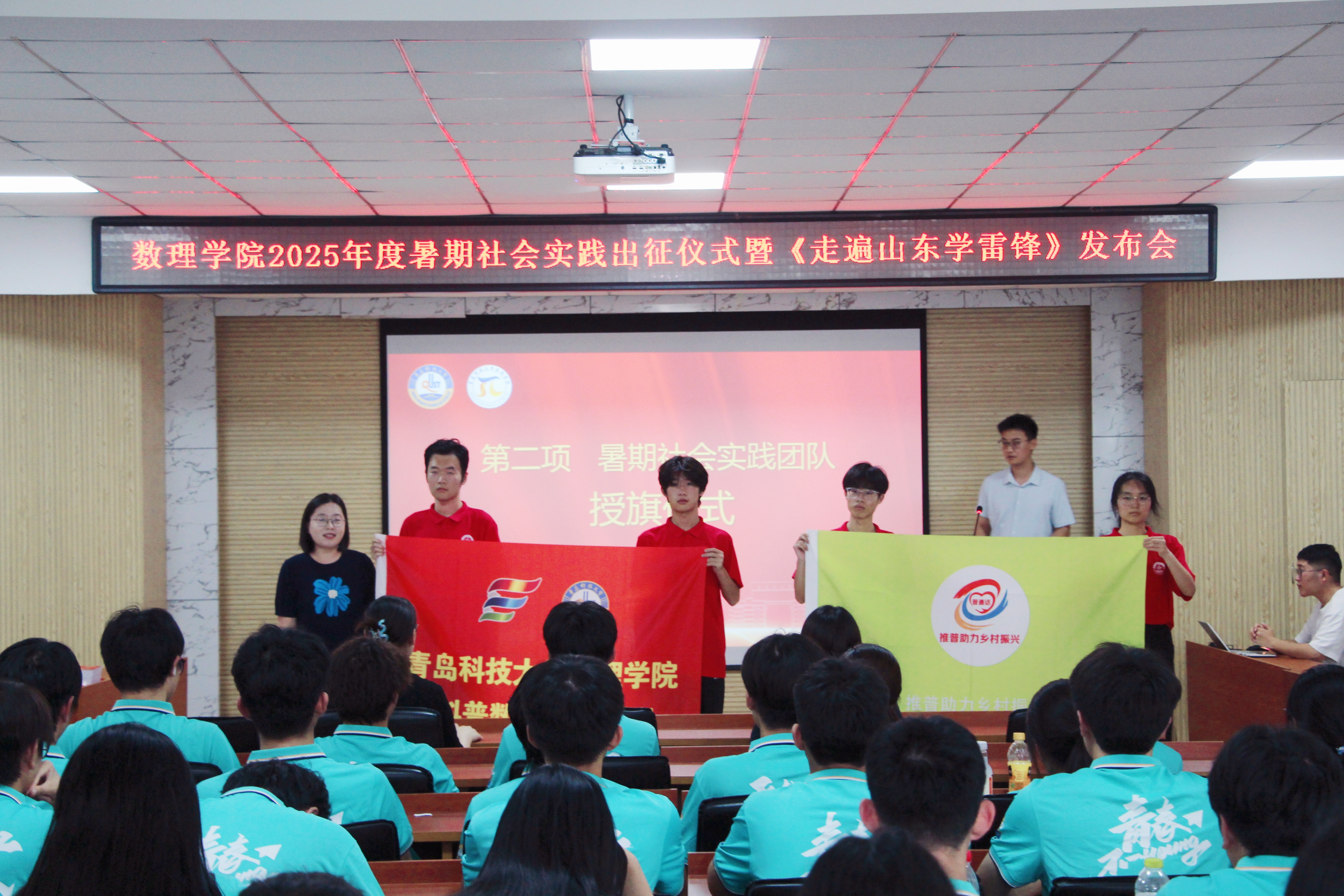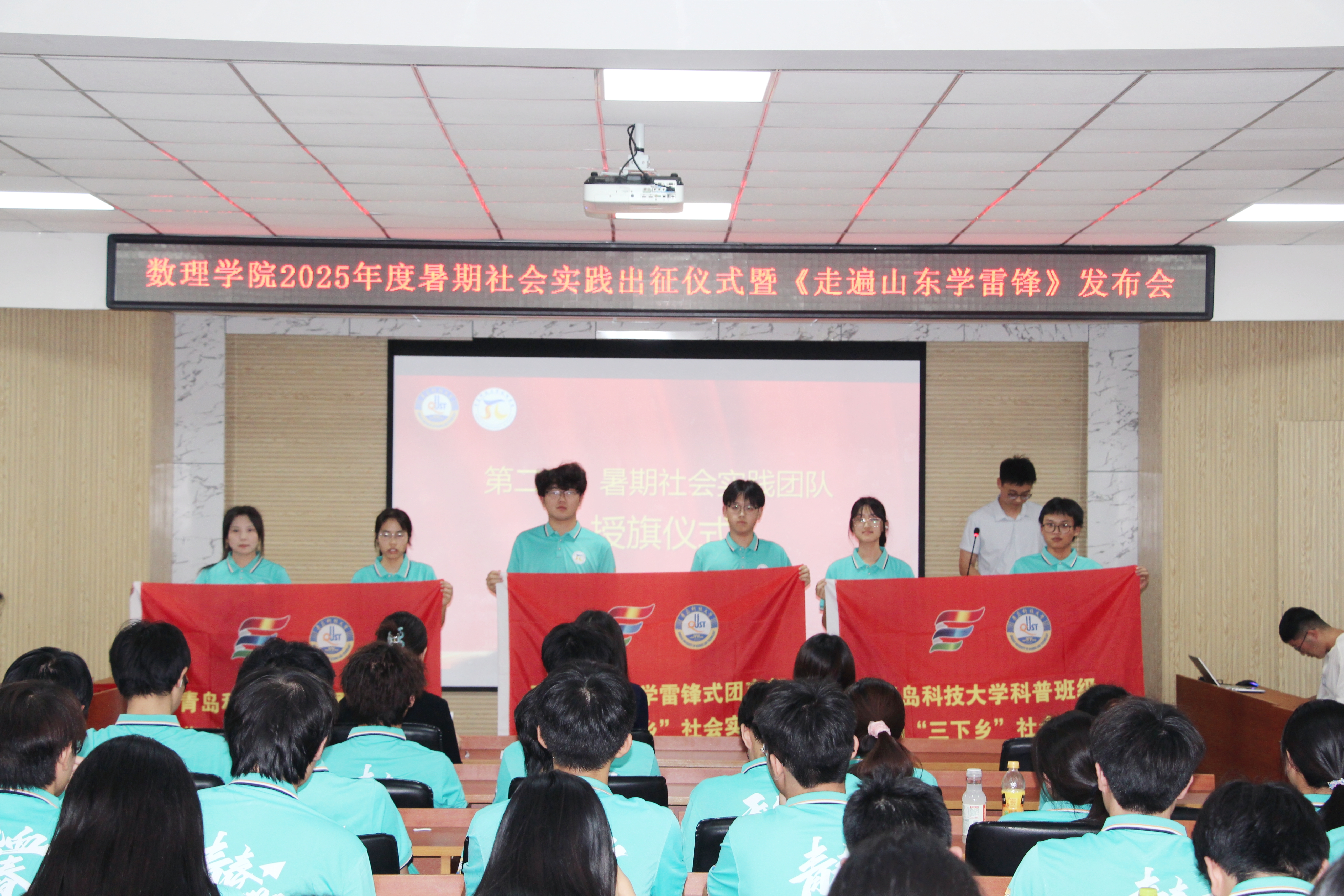 李雯雯依次为团中央专项实践队和校级重点队授旗。据统计,今年学院共组建40支实践队,其中2支入选全国团中央专项,近400名学生将分赴山东、湖南、黑龙江、甘肃等12个省区开展志愿宣讲、教育关爱等志愿服务。
