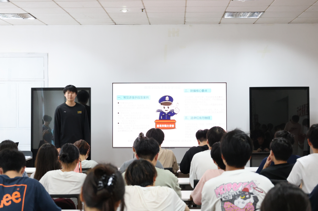 活动中,学院学生会权益部结合诈骗案例进行专题分享。结合《中华人民共和国反电信网络诈骗法》的立法背景和核心内容,详细向同学们讲解了电信网络诈骗的常见手段,如“刷单诈骗”“冒充公检法诈骗”“校园贷陷阱”等,并通过真实案例剖析诈骗分子的作案手法和防范要点。