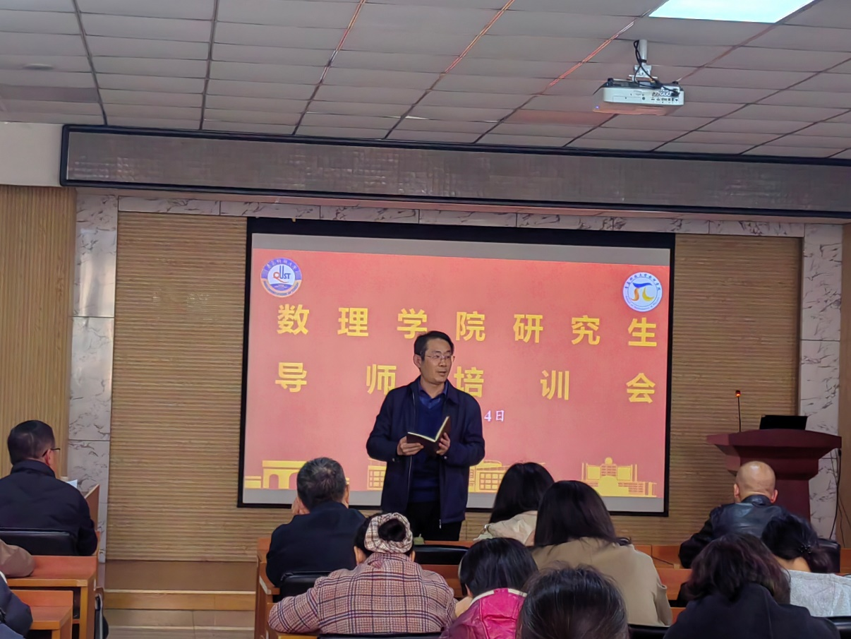 在220会议室举办2025年度研究生导师培训会,学院在岗导师参会,会议由分管副院长王明辉主持。