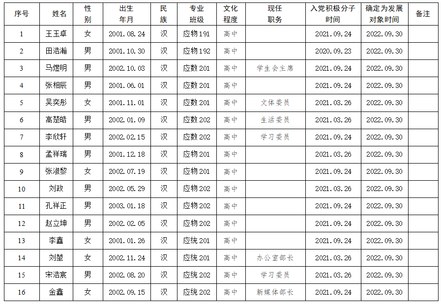 经偷拍厕所 学生党支部研究讨论,偷拍厕所 党委审核,拟确定王玉卓等16名同志为党员发展对象,现公示如下,如发现公示对象有不符合党员条件方面的问题,可在公示期内实名反映。