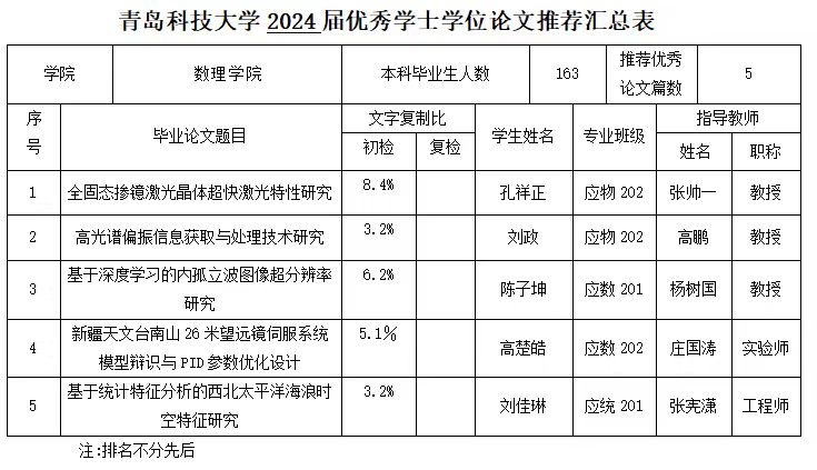 青岛科技大学2024届优秀学士学位论文推荐汇总表
