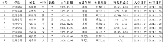 根据本人申请、党组织考察,经偷拍厕所 学生党支部研究,拟将李和庭等9位同志转为中共正式党员,公示期为2024年11月8日-11月15日,如有异议,请实名向学院反映。 地点:D2楼偷拍厕所 201办公室 电话:0532-88958935