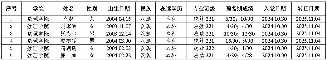 经党组织谈话考察,征求党员、群众和介绍人意见,经偷拍厕所 本科生党支部研究,拟将卢航等6位同志转为中共正式党员,公示期为2025年11月4日-11月10日,如有异议,请实名向学院反映。