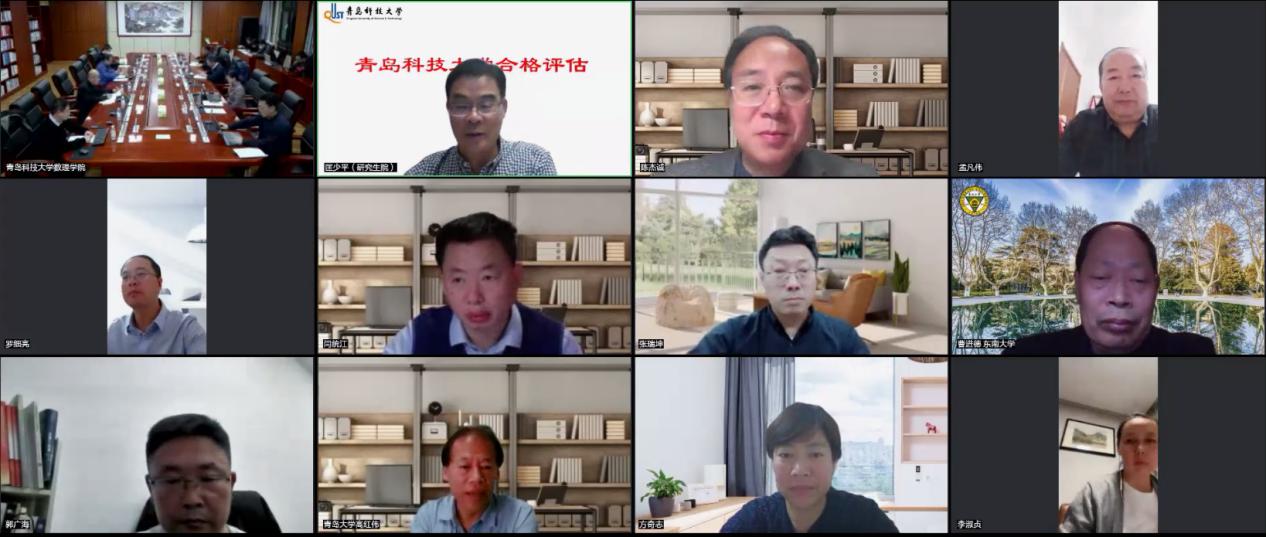 11月27日,学校数学、统计学硕士一级学科学位点合格评估会议在崂山校区综合服务楼5015会议室举行,党委常委、副校长罗细亮出席会议。会议邀请了七位数学、统计学领域的专家组成学位点评议组,组长由第七届国务院学位委员会数学学科评议组成员、教育部数学类专业教学指导委员会委员、浙江师范大学数学与计算机科学学院院长陈杰诚教授担任,成员包括全国应用统计专业学位研究生教育指导委员会委员、教育部统计类专业教学指导委员会副主任委员、山东省统计学学科评议组成员、山东大学金融研究院院长陈增敬教授,教育部数学类专业教学指导委员会委员、东南大学数学学院院长曹进德教授,山东省教学指导委员会数学类专业及大学数学课程分委副主任委员,中国海洋大学教务处处长方奇志教授,中国数学会理事、山东数学会副理事长、山东省首届理科一组学科评议组成员、山东省教学指导委员会数学专业副主任委员孟凡伟教授,中国运筹学会常务理事、中国系统工程学会常务理事、山东数学会常务理事、青岛大学数学与统计学院院长高红伟教授,山东省教学指导委员会数学类专业及大学数学课程分委委员、中国石油大学(华东)理学院副院长闫统江教授,会议由研究生院院长匡少平教授主持,采用线上线下相结合的方式进行。