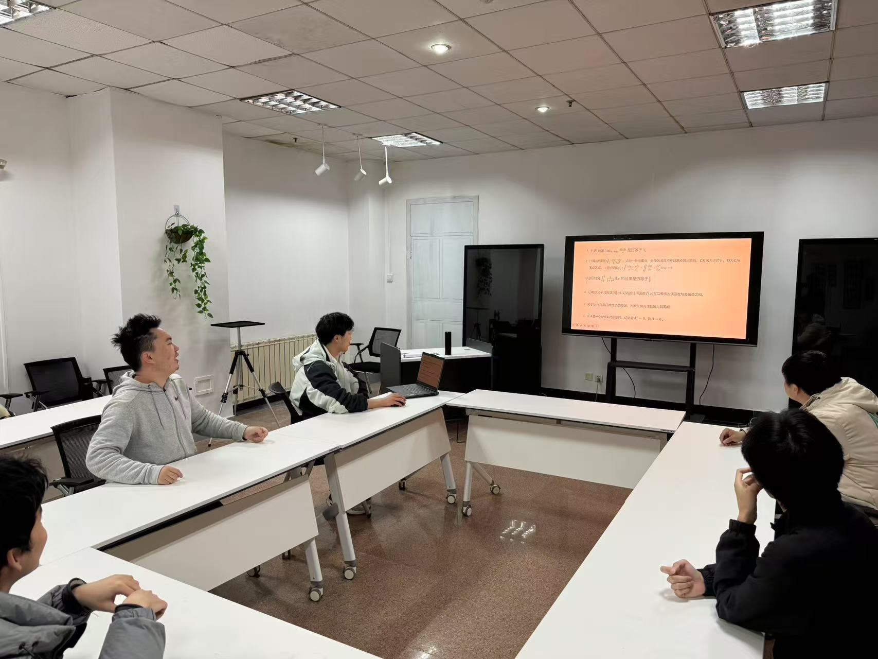 分享会上,3名主讲人结合自身备赛经历展开多维分享。应数232班孟祥飞系统解析竞赛知识体系,讲解“基础定理推导”和“典型例题精练”相结合的双轨学习法;应数231班王子瑶结合自身经验,展示如何利用各种数学习题集教材与网络资源提升自身核心素养;应物221班张景鹤着重分享跨学科备赛经验,展示如何将数学思维迁移至物理问题求解。活动特别设置“1v1诊断”环节,主讲团队针对典型习题进行分步拆解,逐一解答现场疑问。2024级学生赵天宇表示:“学长们对数学竞赛的深入讲解让我豁然开朗,特别是对微分方程模块的解题框架有了全新认知,听完之后我备赛的信心更足了,希望接下来能代表学院拿到好成绩。”“易知π”负责人刘浩晨介绍,后续将推出“线上答疑专区”“一对一竞赛指导”等系列服务,以朋辈影响助力提升“数学竞赛种子库”选手的竞赛水平。