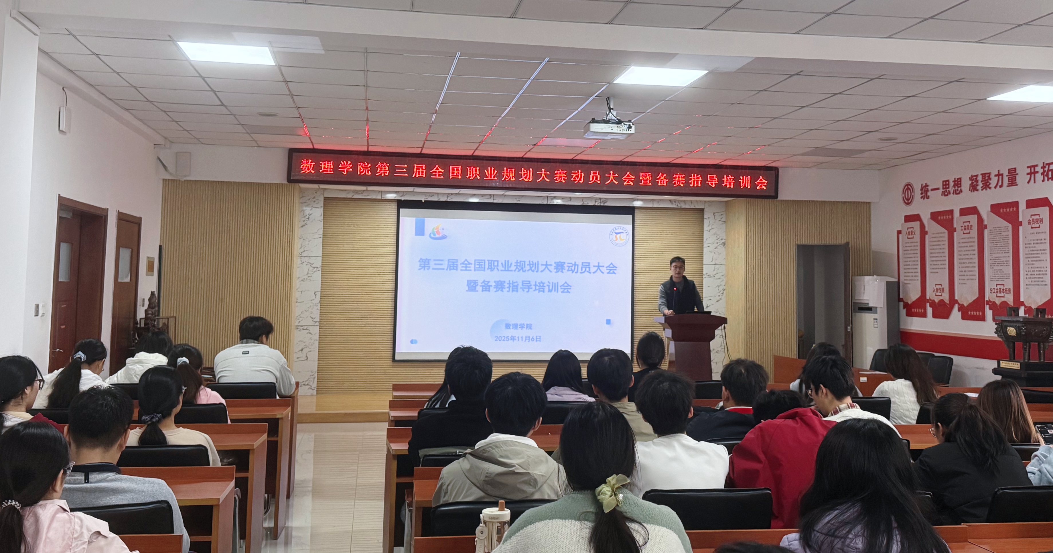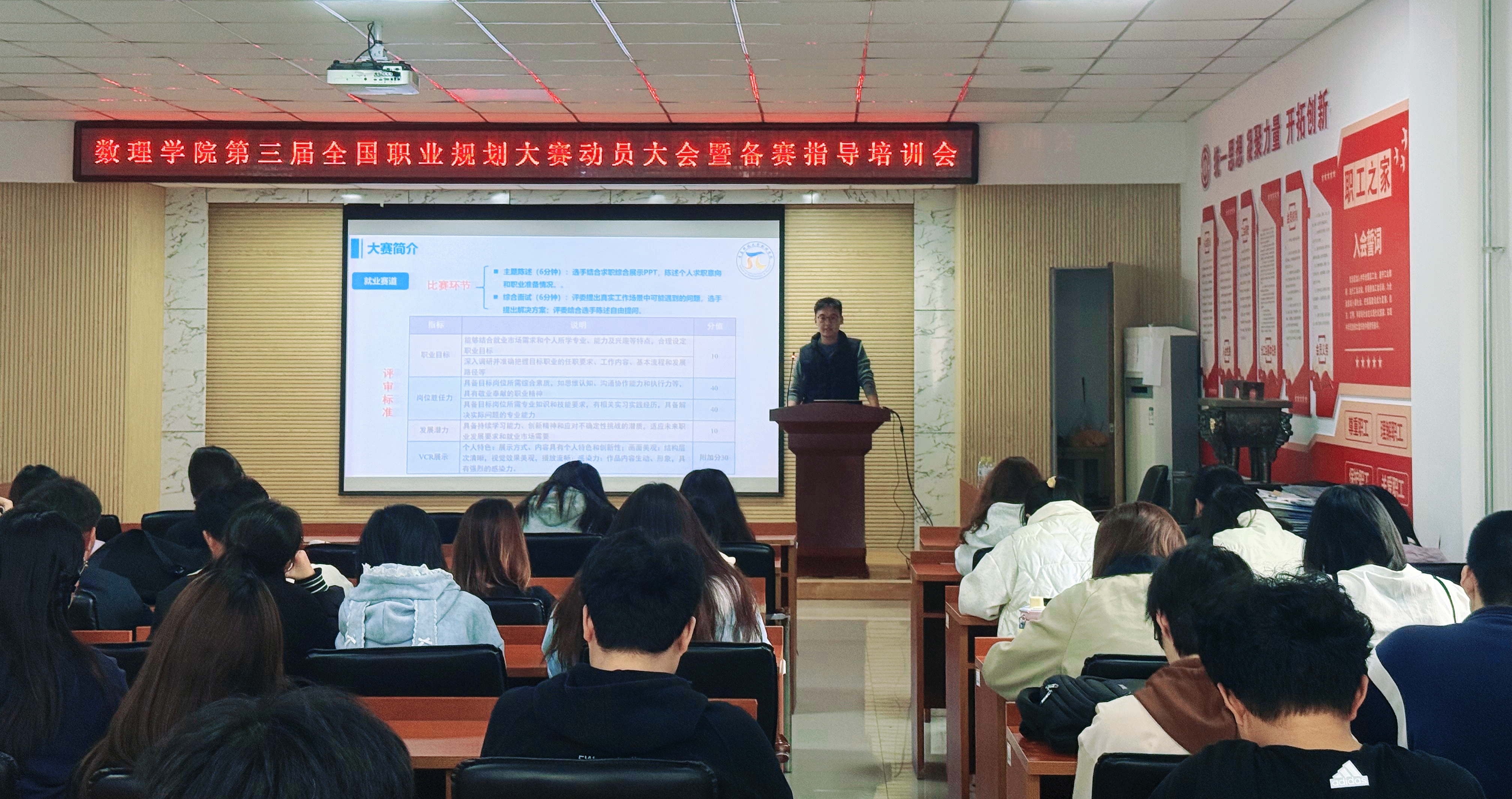 举办第三届全国职业规划大赛动员大会暨备赛指导培训会,会议由学院双创工作负责老师丁璇思主持。