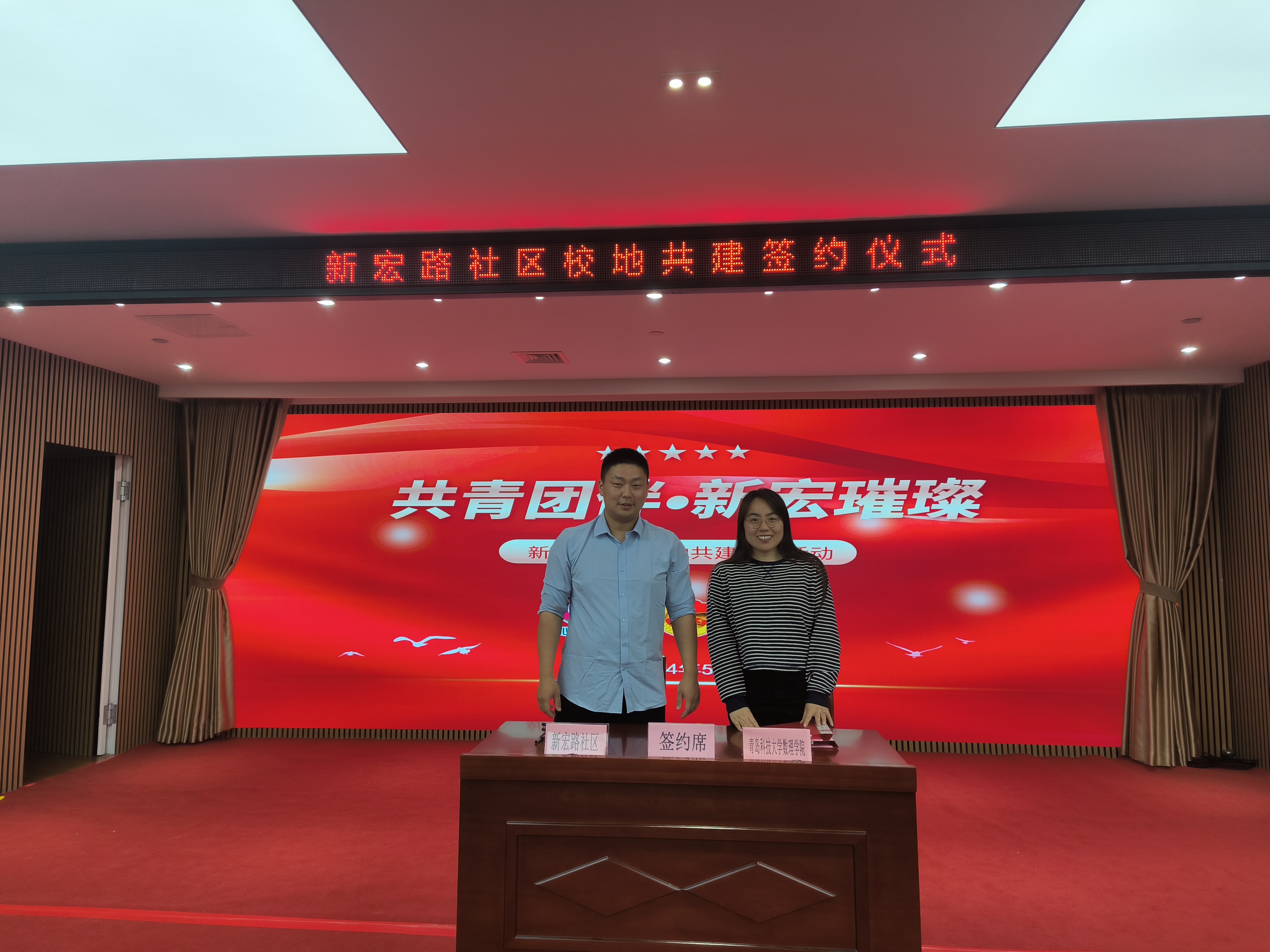 “共青团伴,新宏璀璨”校地共建签约仪活动,新宏路社区党委书记刘宇介绍社区基本情况付凯对偷拍厕所 的基本情况和志愿服务项目进行了重点介绍,双方展示优势资源、交流共建需求,完成了初步共建意向清单并进行现场共建签约仪式。付凯一行在社区党支部书记梁彤的引导下深度参观党群服务中心。