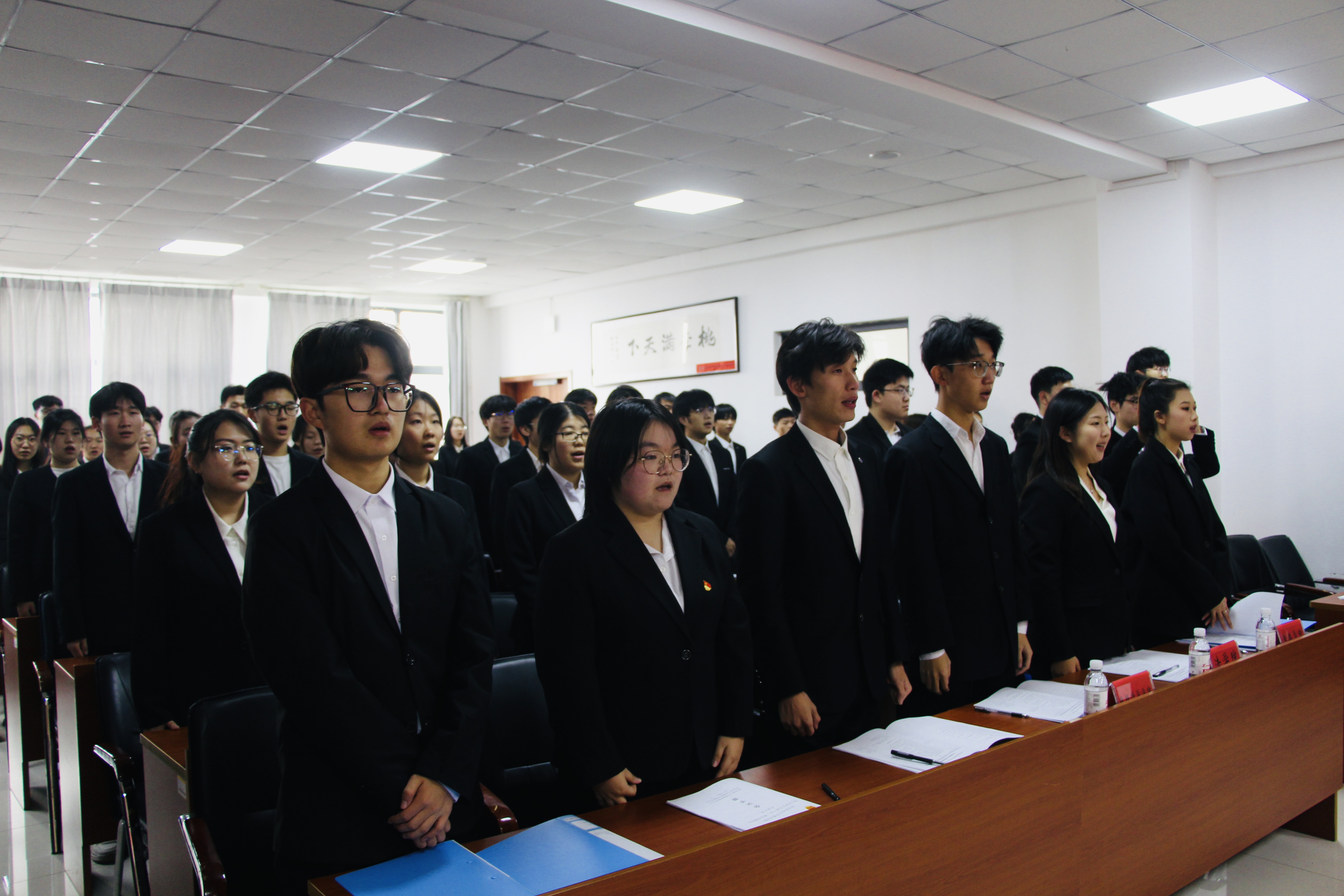 会议最后,与会成员奏唱团歌《光荣啊,中国共青团》,至此,学院第八次学生代表大会、第五次研究生代表大会胜利闭幕。