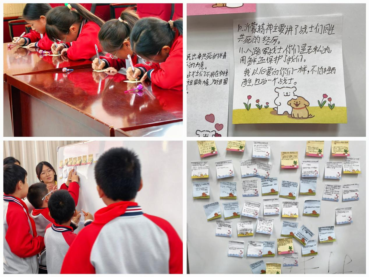 为了加深同学们对沂蒙精神的理解,宣讲团还特别设计了知识竞答环节,并对表现优异的同学进行表彰。宣讲过程中,同学们积极踊跃地回答问题,主动参与其中,现场气氛活跃,宣讲效果良好。同学们在便利贴上写下自己的感悟,并贴在展板上进行展示。宣讲结束后,黄埠小学对宣讲团给予肯定,并撰写感谢信以示充分认可。