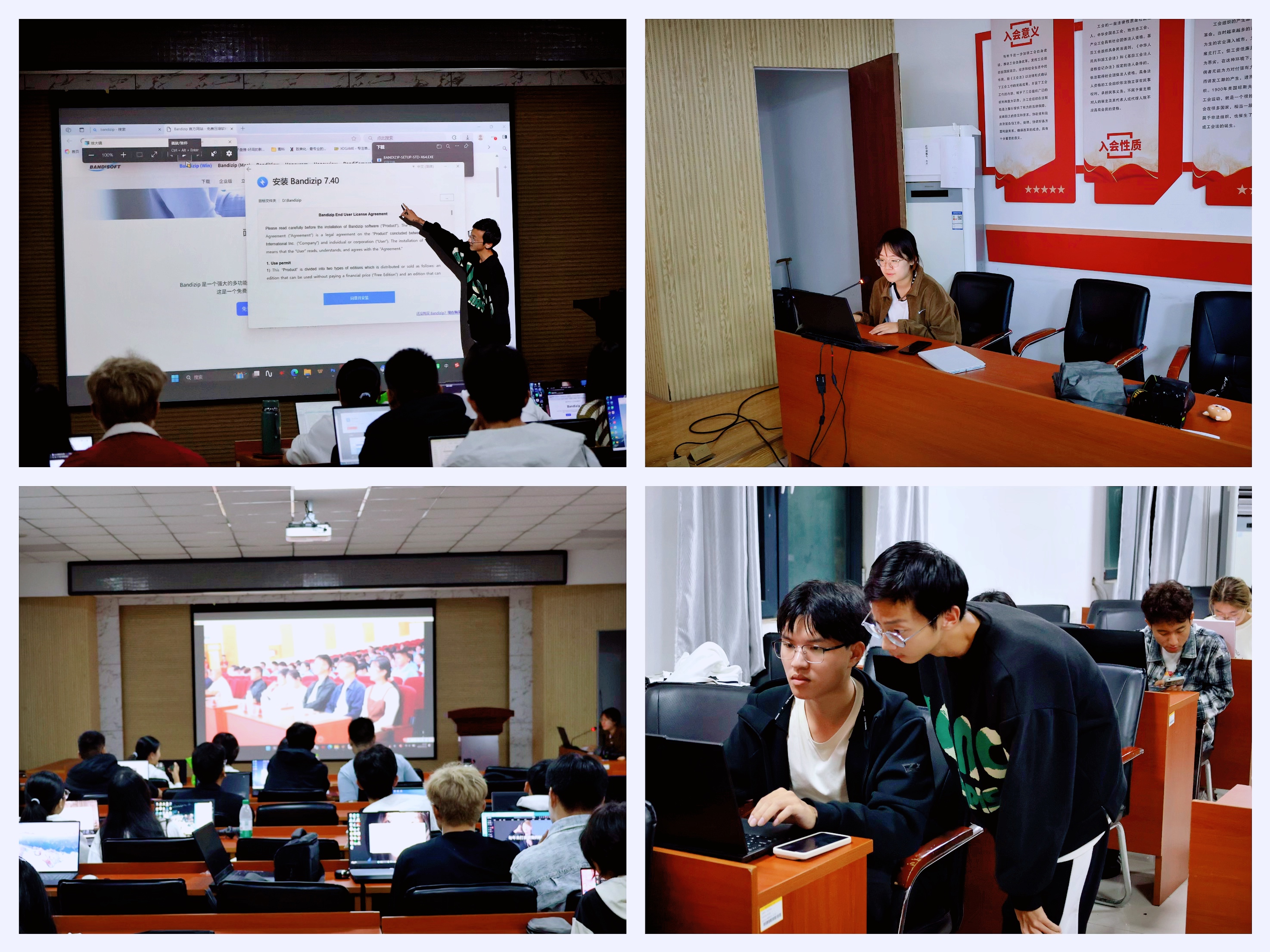 视野之外,摄影之道。谢佳怡展示优秀照片,讲解拍摄机位,着重讲述了照片的布局,并从开学典礼上拍摄的图片切入,结合实际,详细分析了每一张图片的优缺点,并说明改正方法。视觉编码,像素重构。孙焕溪围绕PS要点,从工作界面介绍开始,化繁为简,逐步演示了图层管理、基础调色、人像修饰等核心操作。为了让讲解更直观,他现场对拍摄的练习照片进行“实战修图”。每一步操作都引得同学们发出阵阵称赞。整场培训气氛活跃,互动频频,成员们在实操环节,积极协作、深入探讨,实现了技能提升与团队融合的共赢。
