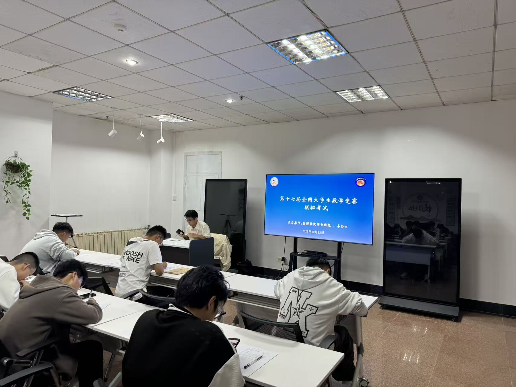 书香班级联合易知π数学共同体于学校一站式社区举办第十七届全国大学生数学竞赛模拟考试。本次活动通过全真模拟竞赛环境,帮助学生熟悉考试节奏、明确备考方向,为冲刺全国赛事奠定坚实基础。