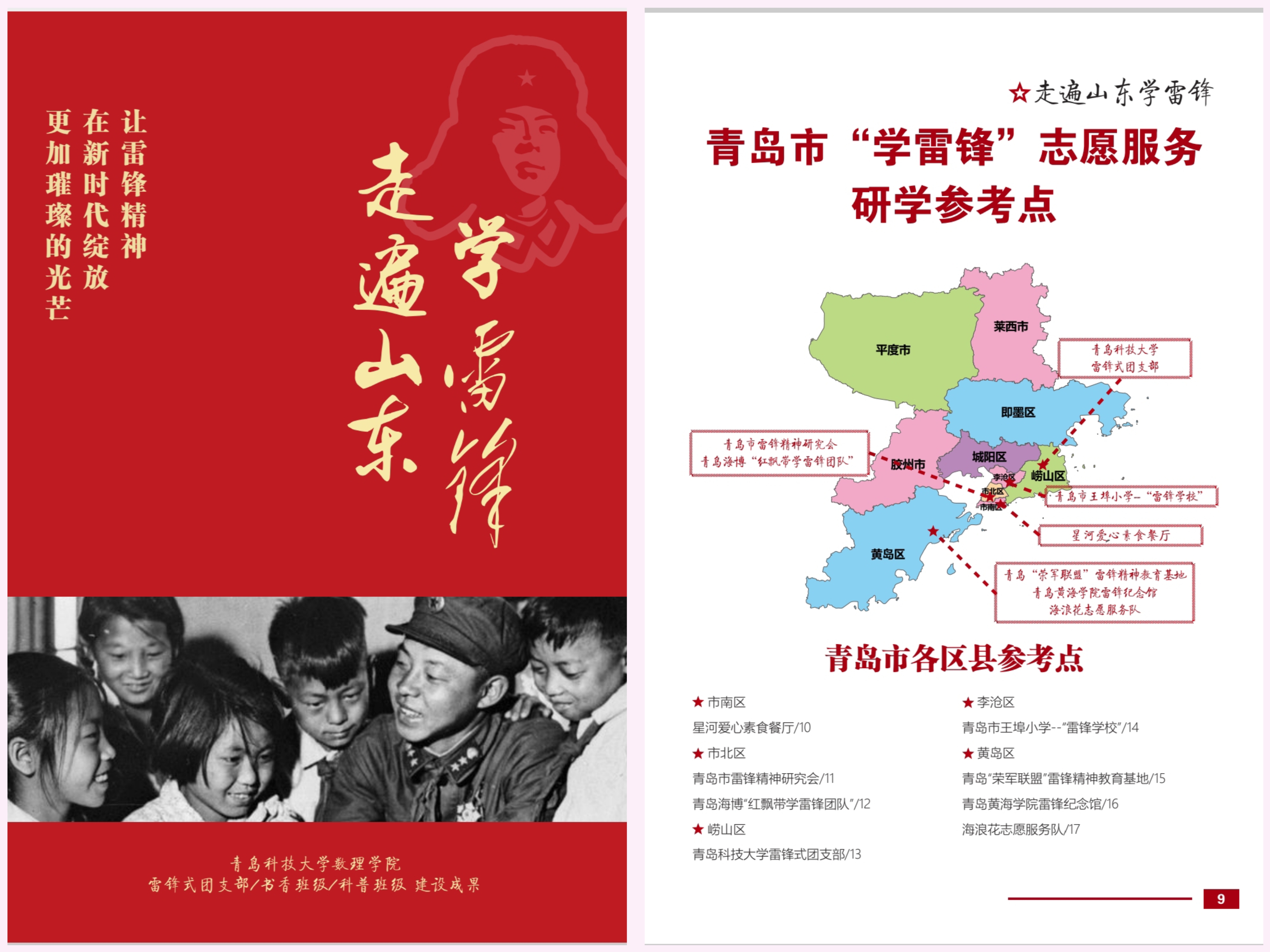 这部手册共120页,在校团委的指导下,由学院师生团队历时半年精心编撰而成,深度整合了雷锋式团支部两年来的实践成果以及书香班级、科普班级建设的理论凝练。手册全面汇集了山东省内具有代表性的学雷锋阵地信息,涵盖各类场馆、组织团队及活动点。书中不仅详细标注了每个阵地的服务内容、详细地址、特色亮点及其研学价值,还深度剖析了其作为志愿服务“活教材”的核心内涵。案例从连续18年爱心送考、获评“全国工人先锋号”的淄博大众雷锋车队,到济宁雷锋纪念馆的“雷锋讲堂”,内容丰富翔实。